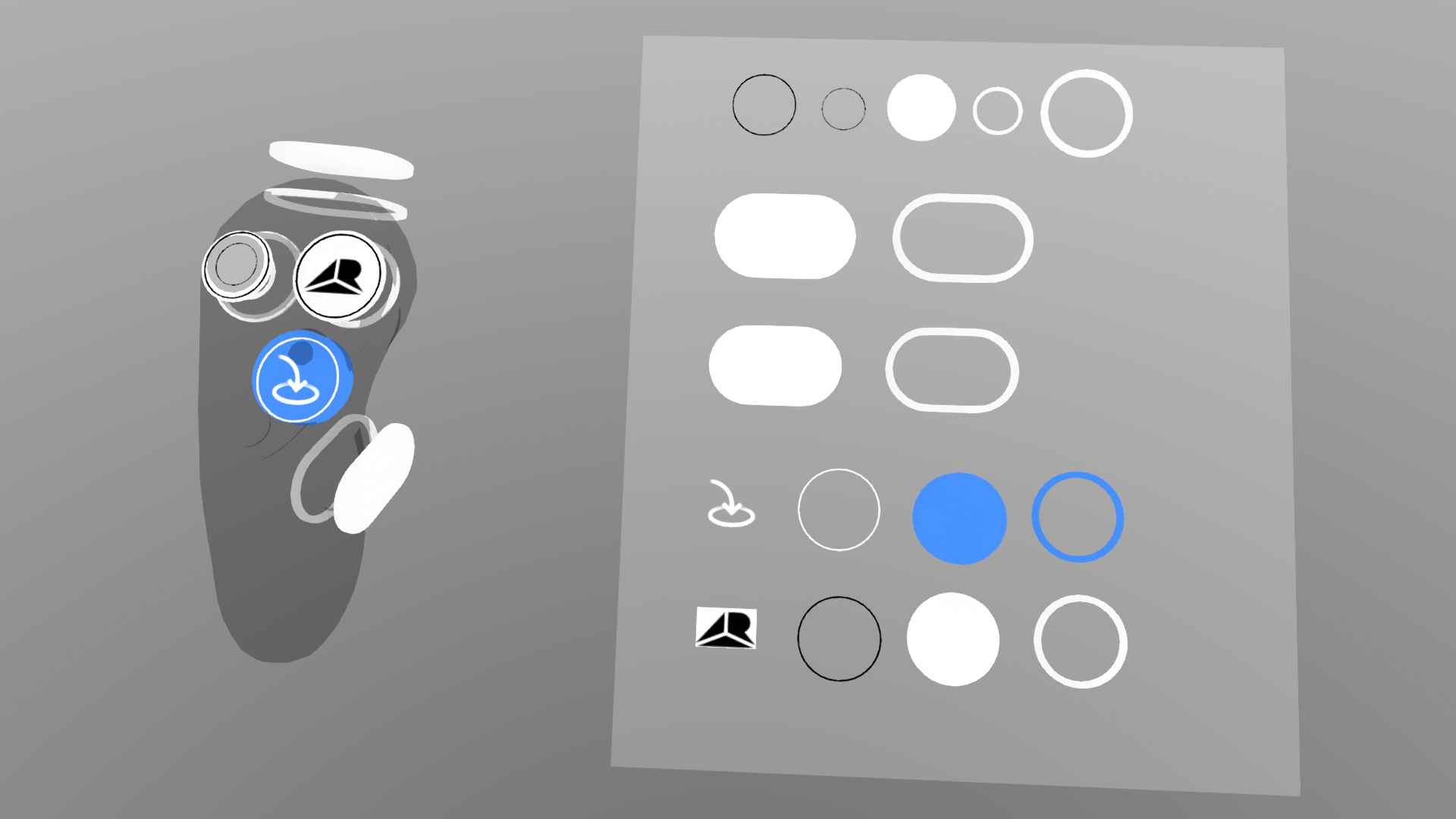 Universal Feedback Orb (U.F.O.), motion exploration – visual feedback for user actions, such as grabbing & selection