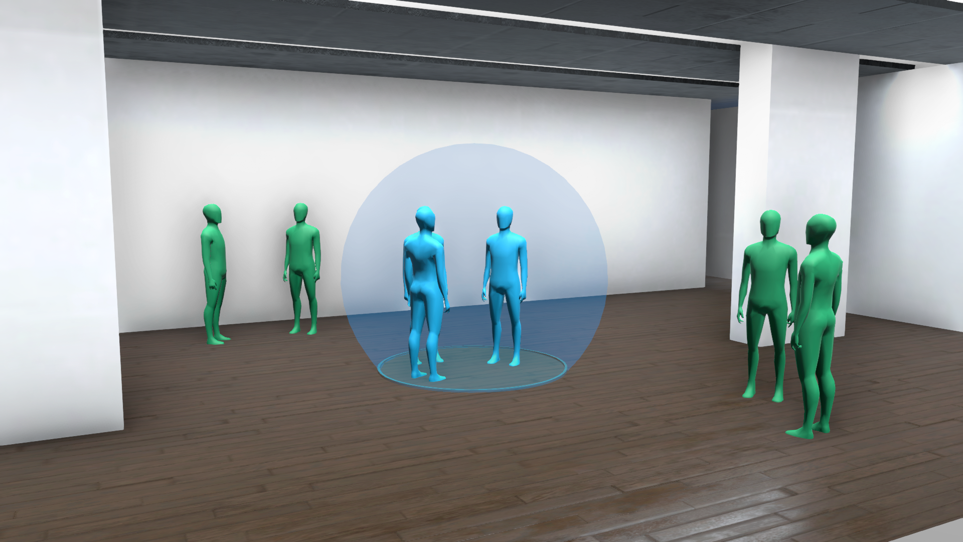 Basically, a placeable breakout space inside which users can only hear one another. I was responsible for the UX, visual, and sound design.