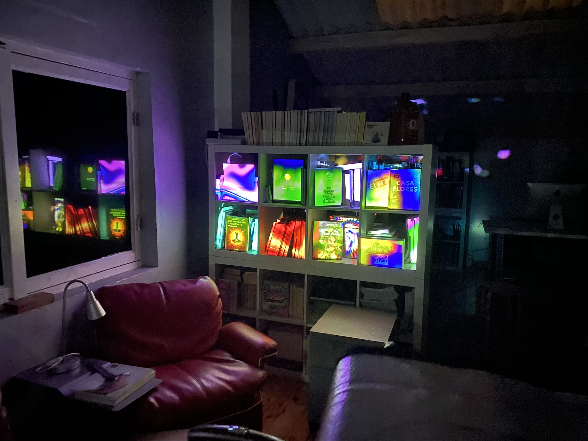 Additive light projected onto real world objects using the Lightform. Scenes are scanned using structured light to capture both visual & depth data. Using masks we can isolate objects in the scene and apply different shader based effects to them.
