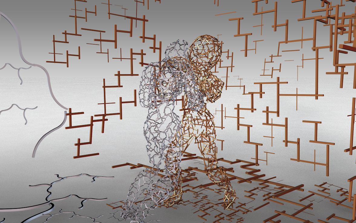 @gmrk_design's original metalwork sculpture that inspired the following piece, exploring the divide between his left & right creative brain